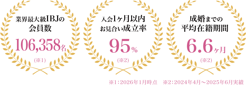 ※1:2026年1月時点 ※2:2024年4月~2025年6月実績 ※3:2024年ご成婚会員様の実績